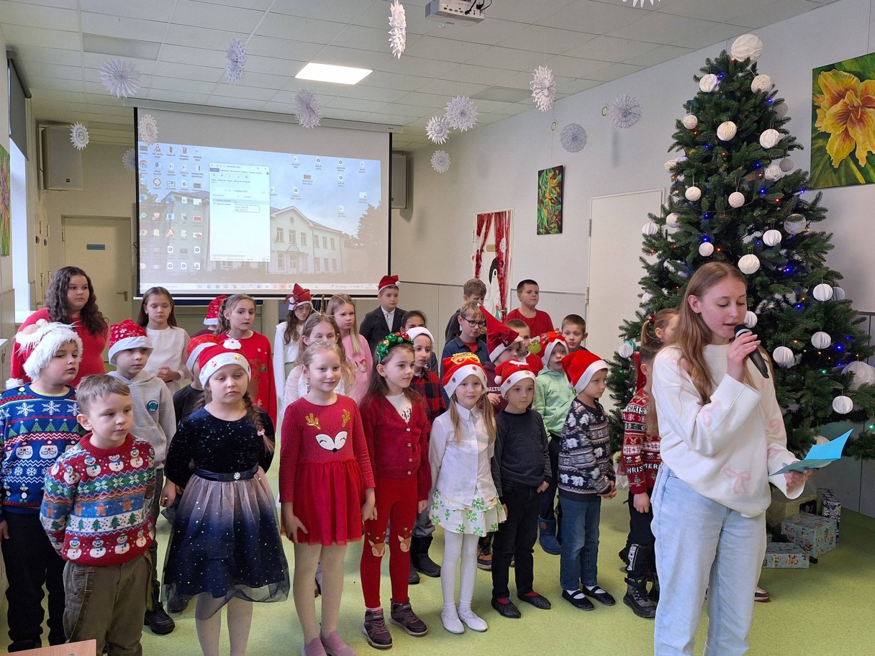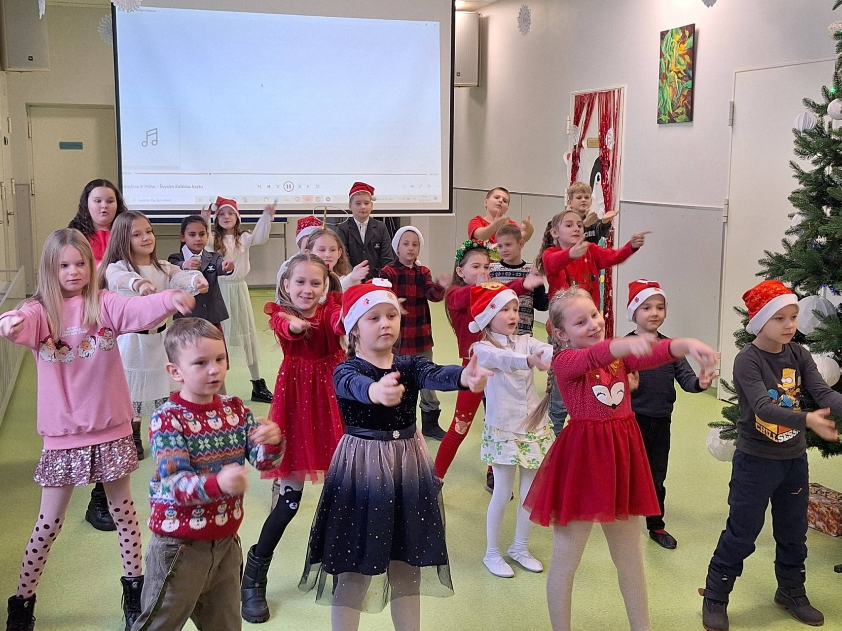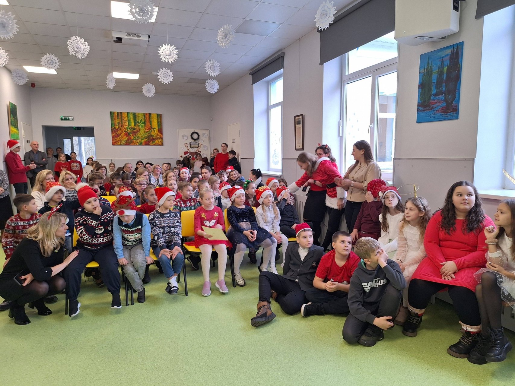 Gimnazijoje nuskambėjo prieškalėdinis koncertas "Kalėdų stebuklo belaukiant", kuriame pasirodė mūsų gimnazijos pradinukai, 5-6 kl. mokiniai bei IIg kl. mokinė Yelizaveta Zinchenko. Nebuvo pamirštos ir apdovanotos nuostabiai klasių duris papuošusios klasės. O prieš tai mūsų mažuosius aplankė ir pats Kalėdų senelis.